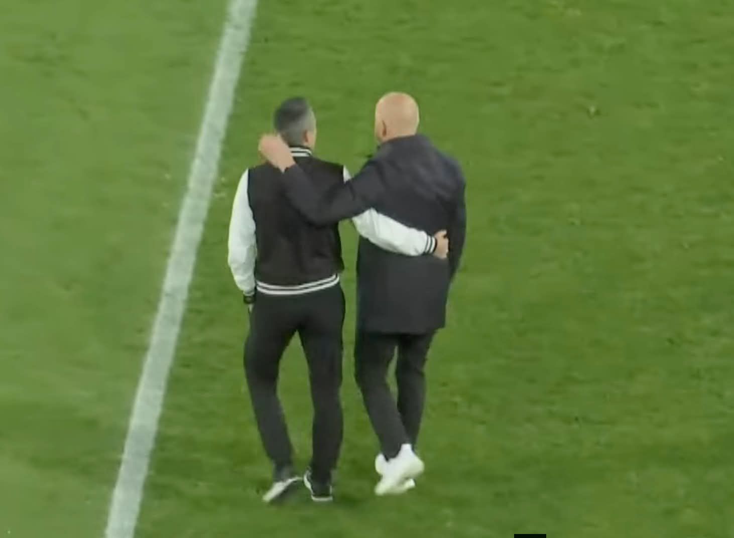 Във фен страници на "сините" се публикуват снимки на двамата треньори - Пер-Матиас Хьогмо и Христо Янев, на които се прегръщат след мача и под тях се пита - "има ли "лягане"" на "червените" в Разград?