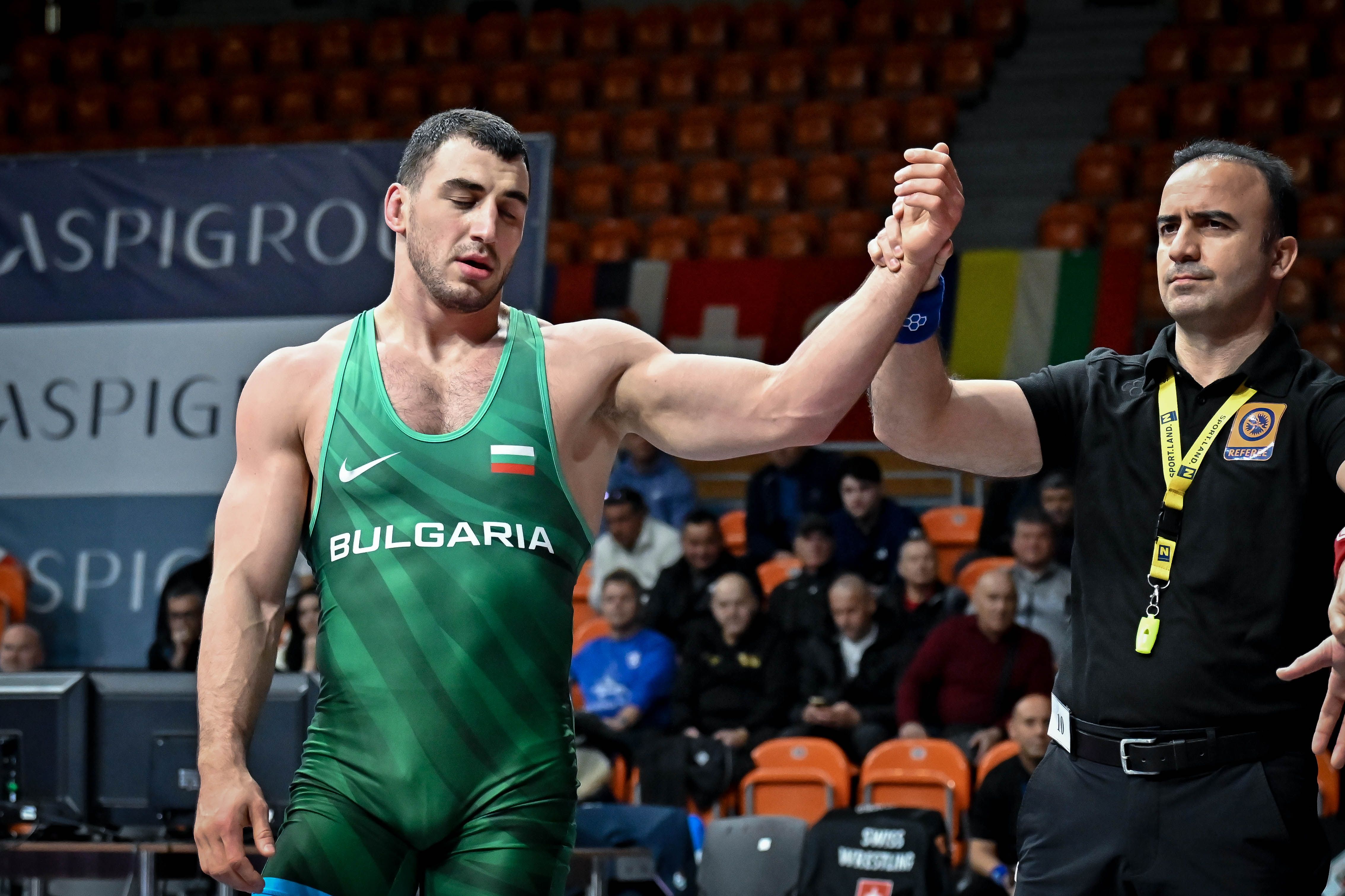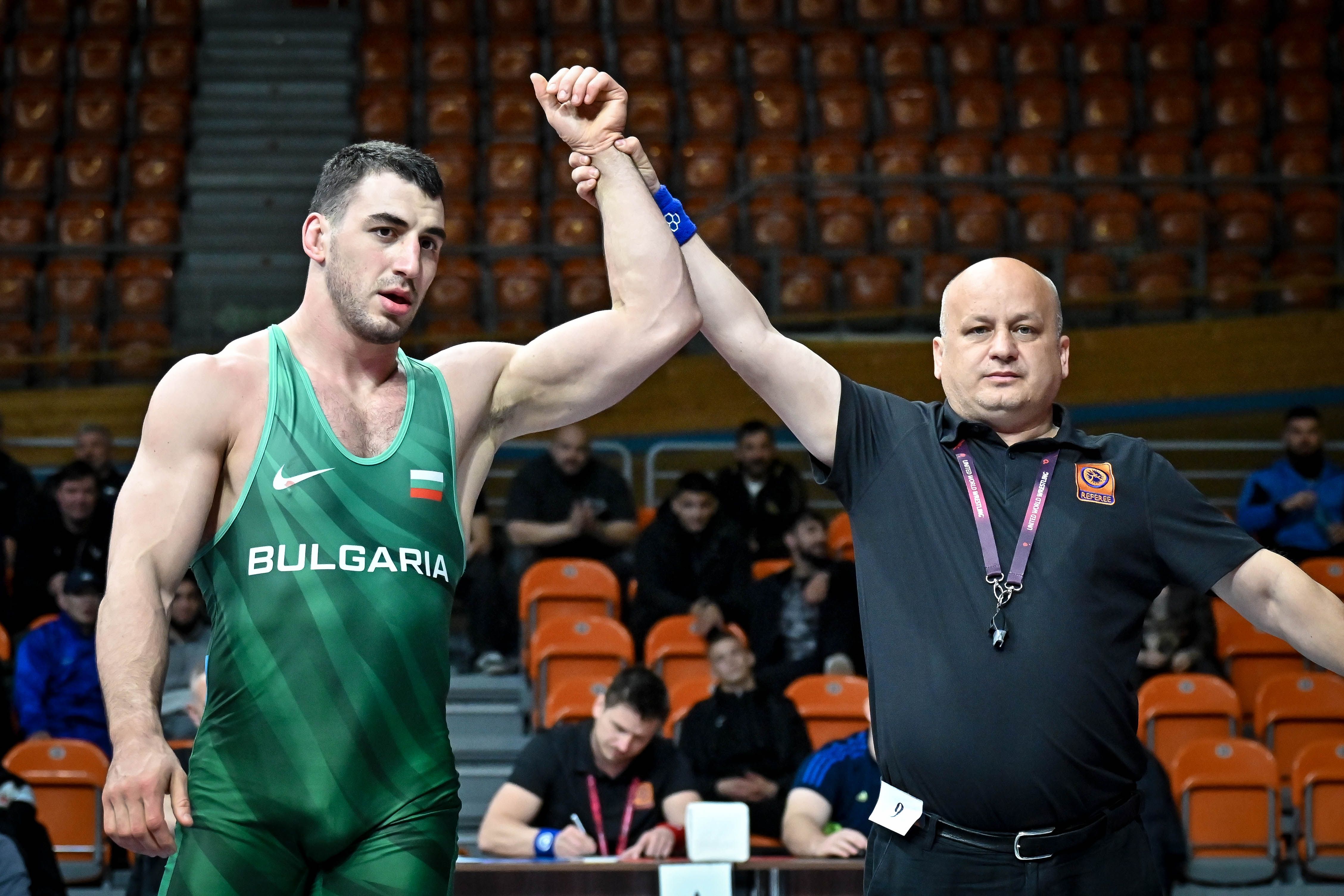 СТЕФАН ГРИГОРОВ, 55 КГ - ПОБЕДА НА СТАРТА С 5:1 Борецът на столичния ЦСКА направи страхотна първа среща на Евро 2026. Григоров се наложи категорично над молдовеца Леонид Мороз, пети на Европейско до 23 години през 2024-та. Стефан се възползва от партер за съперника и поведе с 5:0 бързо. През втората част силите на Мороз стигнаха само за една точка и така нашето момче преодоля квалификациите.