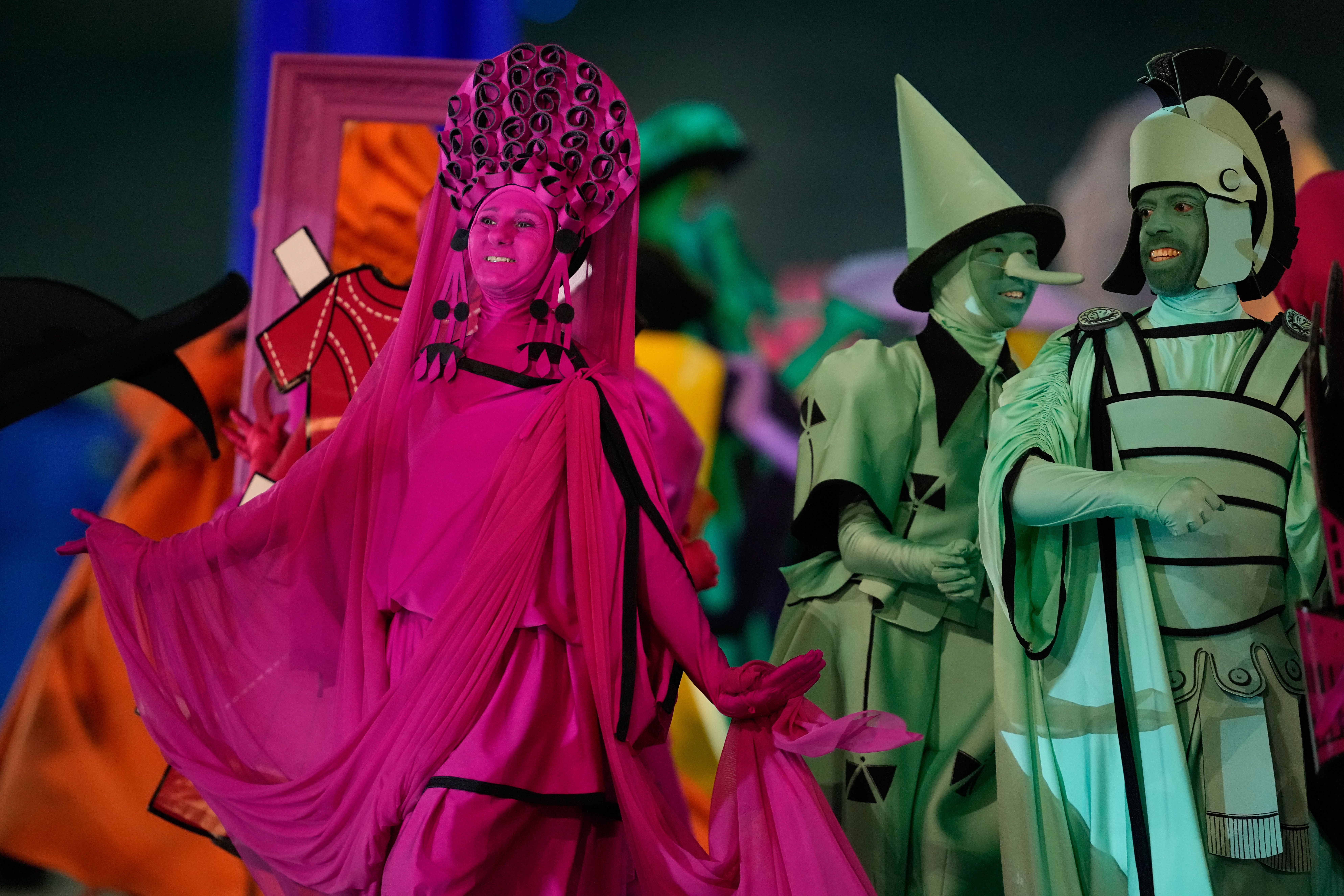 Самото шоу премина през няколко ясно разграничени акта. Откриването наподобяваше стилизирана видео картичка, съпроводена от поп композиция с ретро евро-поп звучене, напомнящо естетиката на „Евровизия“. На сцената се появи артист, облечен като Купидон, който символично въведе темата за любовта и хармонията. В следващия сегмент италиански симфоничен оркестър изпълни „Симфония за фантазия“ в чест на Верди, Пучини и Росини, докато сцената се изпълни с артисти в пъстри костюми, а отгоре се „изсипаха“ гигантски цветни елементи в синьо, червено и жълто.