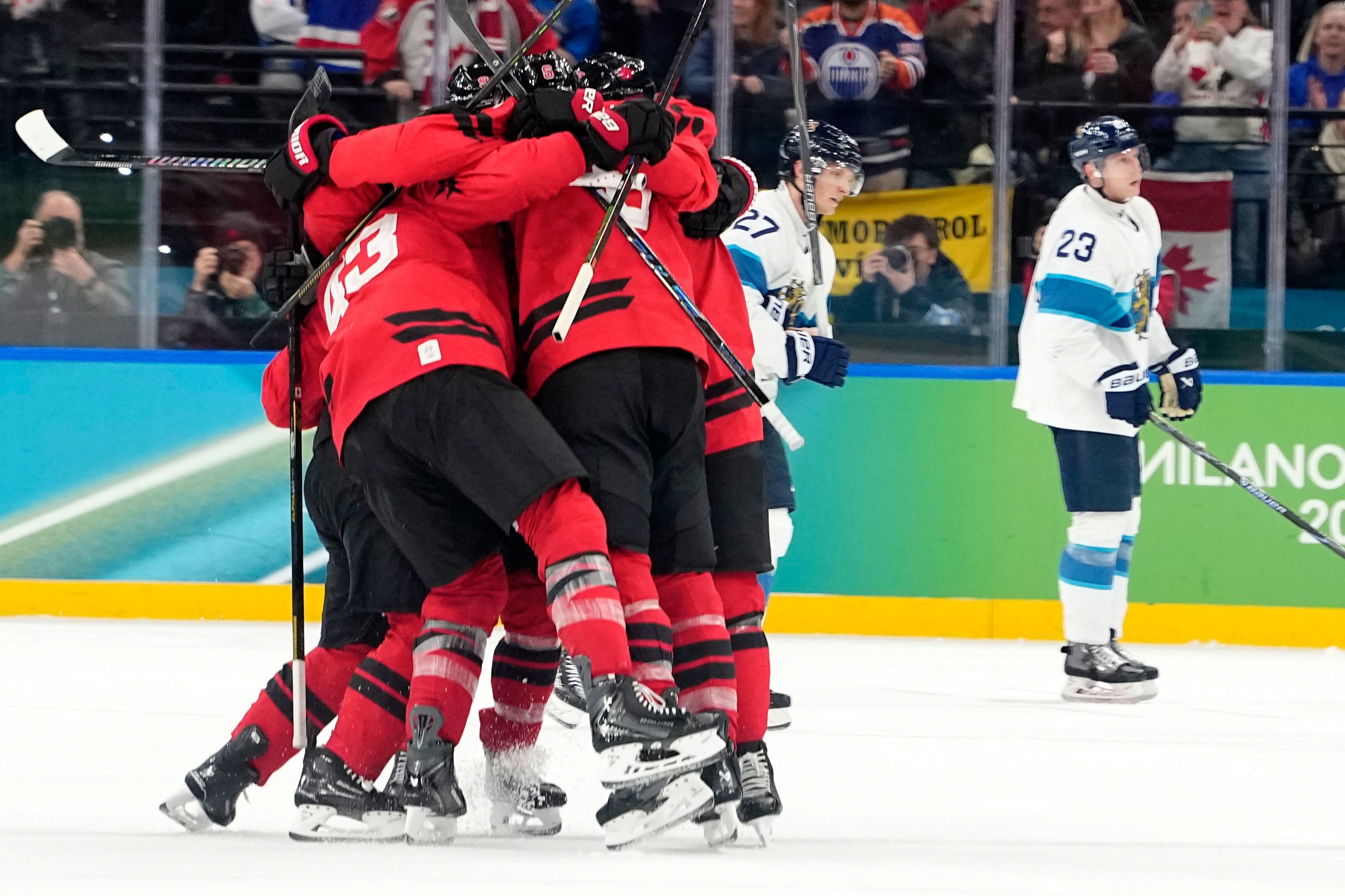 Канада направи впечатляващ обрат срещу Финландия и след успех с 3:2 се класира за финала на олимпийския турнир по хокей на лед в Милано–Кортина 2026. Победното попадение падна едва 36 секунди преди последната сирена, когато Нейтън Маккинън реализира при числено предимство и прати „кленовите листа“ в мача за златото.