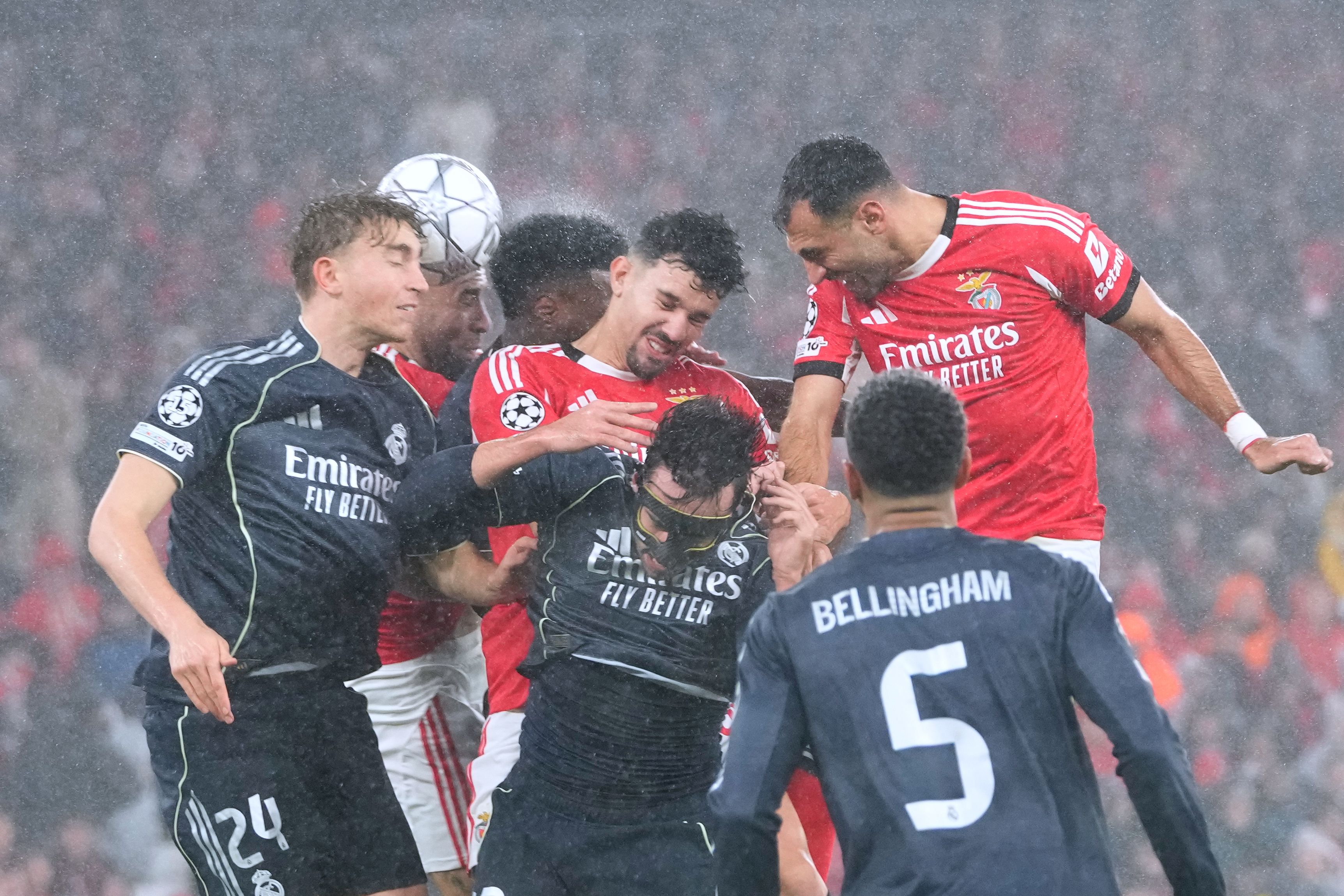 Бенфика поднесе голямата изненада, побеждавайки Реал Мадрид с 4:2 под проливния дъжд в Лисабон и изхвърли „белите“ от топ 8 в Шампионската лига. Герой за „орлите“ стана Андреас Шйелдеруп с два гола, а веднъж се разписа и Вангелис Павлидис. За Реал Килиан Мбапе отбеляза и двете попадения, но те се оказаха недостатъчни.